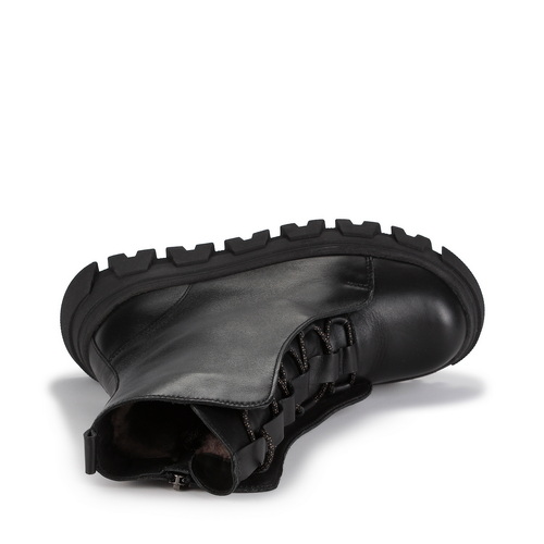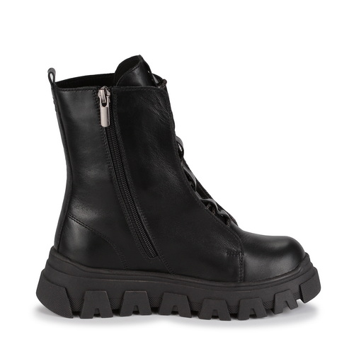 Детские ботинки черного цвета RICONTE KIDS из натуральной кожи на массивной ТЭП подошве с оригинальной протекцией являются лучшим решением для девочек на зиму. Обувь очень теплая, поскольку сделана только из качественных материалов, которые защитят ребенка от морозов. Подкладка из текстиля с ворсом и натуральной шерсти обеспечивает воздухонепроницаемость, удобство и теплоизоляцию. Ботинки не промокают, поэтому в них спокойно можно ходить по сугробам и не волноваться, что ребенок заболеет. Главный элемент дизайна – выступающие вставки по бокам, которые смогут защитить от попадания снега внутрь. Шнурки в полосатом принте и молния позволят правильно зафиксировать ногу.