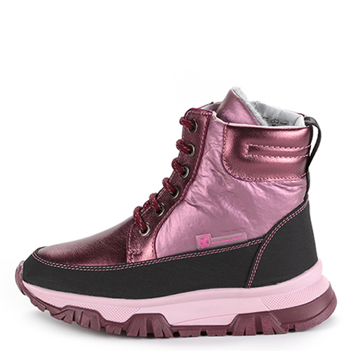 Ботинки зимние ELEGAMI из текстиля подойдут для ярких девочек, которые предпочитают выделяться из толпы и получать большое количество комплиментов. Благодаря стильному дизайну образы с такой обувью всегда будут нарядными и праздничными. Верх выполнен из интересного материала, который словно искрится и переливается. Сочетание разных оттенков розового привлечет внимание модницы. Шнуровка и высокая ТЭП подошва в двойном слое обеспечат дополнительный комфорт. Подкладка из текстиля, ворса и натуральной шерсти не даст замерзнуть ребенку в самые сильные морозы: будь это метель или снегопад.