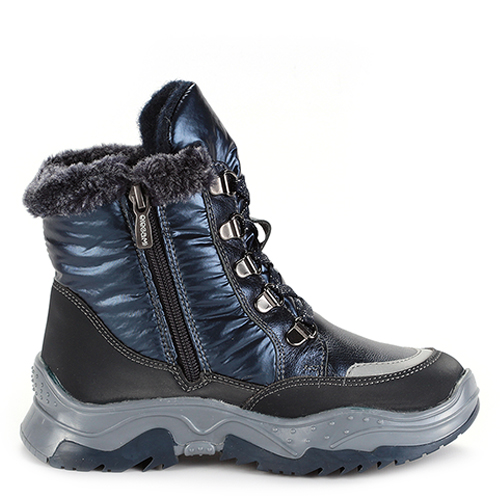 Удобные зимние ботинки ELEGAMI для девочек выполнены в изумительном дизайне, который напоминает северное сияние. Красивое сочетание синих оттенков вдохновляет и привлекает внимание окружающих. Переливающийся материал добавляет образу изюминки. Ваша дочь точно сможет ощутить себя особенной. Нескользящая ТЭП подошва в двойном слое обеспечит ребенку правильную походку и осанку. Подкладка из текстиля, ворса и натуральной шерсти отлично согревает. Вы можете не волноваться о том, что ребенок заболеет, ведь качественные материалы удерживают тепло и препятствуют проникновению влаги внутрь. Шнурки с эффектом блесток и мех по краям делают дизайн неповторимым. Дайте возможность своей дочери ощутить себя самой модной в городе вместе с ботинками ELEGAMI.