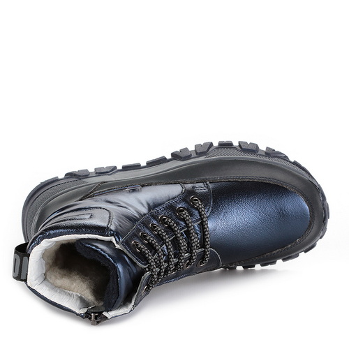 Удобные зимние ботинки ELEGAMI для девочек выполнены в изумительном дизайне, который напоминает северное сияние. Красивое сочетание синих оттенков вдохновляет и привлекает внимание окружающих. Переливающийся материал добавляет образу изюминки. Ваша дочь точно сможет ощутить себя особенной. Нескользящая ТЭП подошва в двойном слое обеспечит ребенку правильную походку и осанку. Подкладка из текстиля, ворса и натуральной шерсти отлично согревает. Вы можете не волноваться о том, что ребенок заболеет, ведь качественные материалы удерживают тепло и препятствуют проникновению влаги внутрь. Шнурки отлично зафиксируют ногу. Дайте возможность своей дочери ощутить себя самой модной в городе вместе с ботинками ELEGAMI.