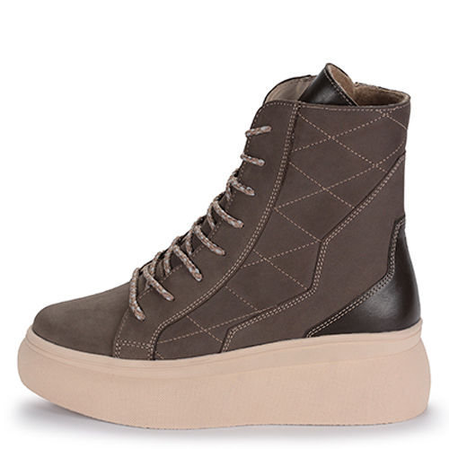 Демисезонные женские ботинки RICONTE выполнены из натурального нубука в цвете хаки. Материал подкладки – текстиль. Эта обувь сочетает в себе качество, комфорт и актуальный дизайн. Сапоги обладают универсальностью, поскольку их можно будет носить как весной, так и осенью. Массивная ТЭП подошва бежевого цвета и швы в виде ромбиков придадут вашему образу индивидуальности. Из-за шнуровки и молнии сбоку обувь подойдет на разную ширину ноги. Создавайте модные образы в стиле кэжуал с помощью этих комфортных ботинок.