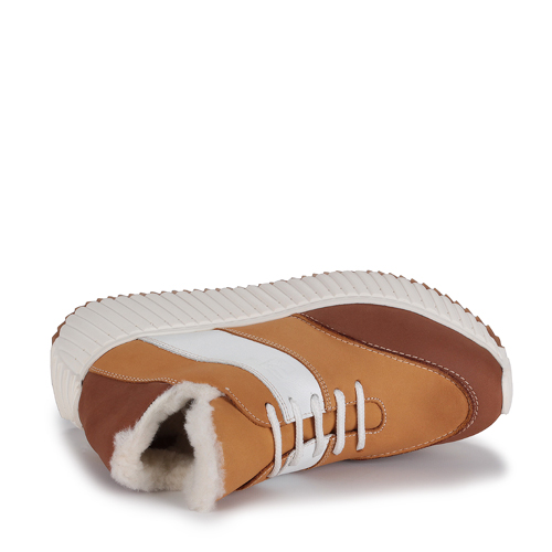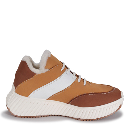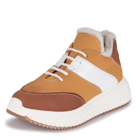 Женские зимние кроссовки RICONTE - идеальный выбор для тех, кто ищет комфортную и стильную обувь на холодный сезон. Материал подкладки из ворса, текстиля и натуральной шерсти позволяет чувствовать уют и тепло на протяжении всего дня. Ботинки с двойной ТЭП подошвой делают оказывают дополнительную поддержку стопы. Вы будете уверенно чувствовать себя на протяжении всего дня. Верх обуви, выполненный из натуральной кожи и нубука, препятствует прониканию излишней влаги. Интересная расцветка в ярком сочетании коричневого,белого и желтого. Чередование оттенков придает дизайну оригинальности. Модель подойдет на узкую и широкую ногу. Шнурки позволят зафиксировать стопу в нужное положение. Они отлично подойдут для работы в офисе или для повседневной носки.