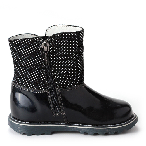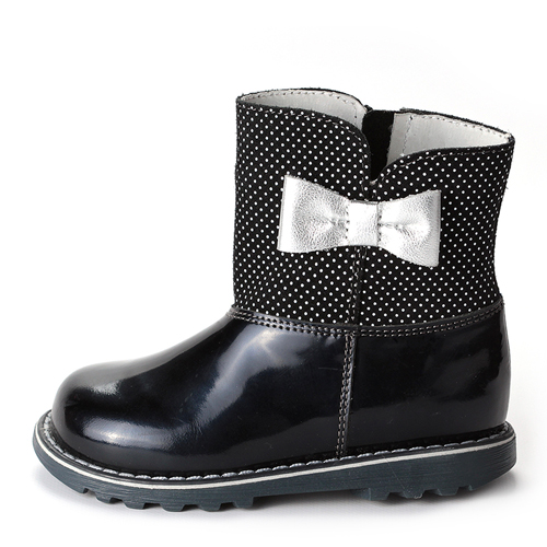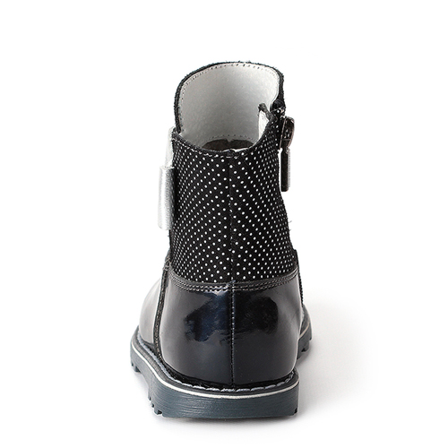 Зимние теплые полусапоги на прочной ТЭП подошве для девочки ELEGAMI темно – синего цвета спасут вашего ребенка в столь холодный период времени за счет качественных и прочных материалов. Верх из натуральной кожи препятствует проникновению холодного воздуха внутрь, а высокая посадка предотвращает попаданию снега. Подкладка из текстиля и шерсти отлично согревает и не дает ребенку замерзнуть и простыть. Это очень важно для мам, которым небезразлично здоровье малыша. Обувь очень легко снимать и надевать с помощью боковой молнии. За счет того, что голенище достаточно объемное, модель подойдет на широкую ногу. Привлекающий дизайн точно понравится юным модницам. Узор в горошек и элегантный бантик сбоку выглядят мило и аккуратно. Порадуйте свою дочь этими чудесными ботиночками.