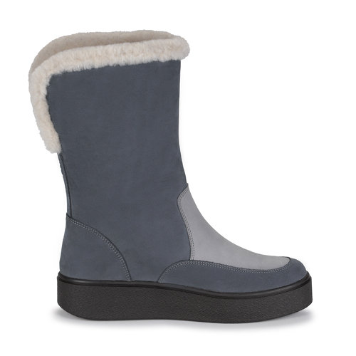 Зимние женские теплые сапоги RICONTE – идеальный вариант на зиму. Материал верха, сделанный из натурального нубука и велюра, мягкий и приятный на ощупь. Именно благодаря такой комбинации сапоги не мокнут в снегопад. Стелька из ворса, текстиля и натуральной шерсти поддерживает оптимальный микроклимат внутри обуви и прекрасно греет. Высокая платформа из ТЭП подошвы легкая и гибкая. Она хорошо поддерживает стопу и защищает ноги от усталости. Сочетание серого и голубого цвета кажется воздушным и нежным. Покупая обувь RICONTE в подарок, вы не только сделаете зиму теплее, но и сердце.